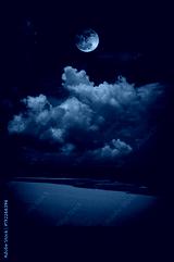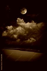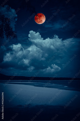 Landscape of sky with bloodmoon on seascape to night. Serenity nature background.