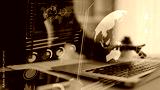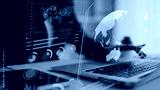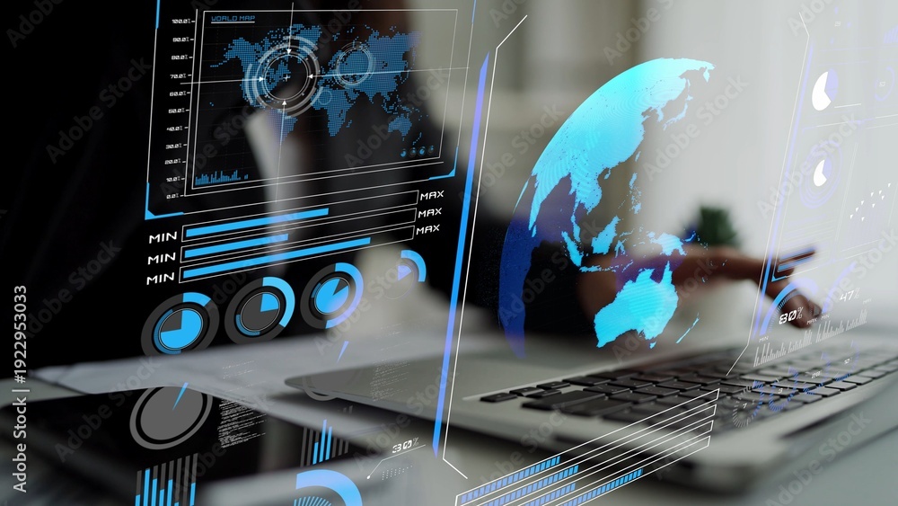High-tech global network connection interface showing worldwide digital communication, data exchange, and internet connectivity. Global connection, data interaction, and worldwide communication. Thunk