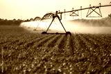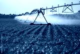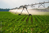 Irrigation system. Agricultural cultivation with watering and sprinkler technology. Agricultural irrigation system. Sprinkler equipment in the field. Irrigation and watering system in farmland