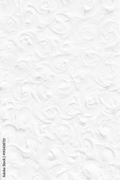 Floral white background with roses. Texture of paint with patterns and divorces in the form of a plant template with petals, wedding composition.