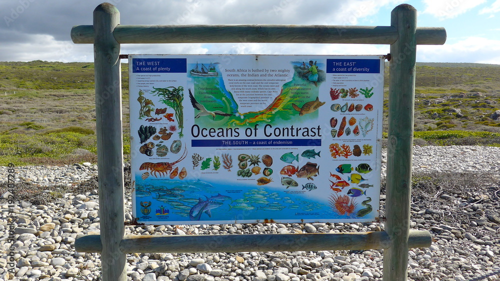 Südafrika. Viele Informationen über Flora und Fauna des Indischen und des Atlantischen Ozean, die sich hier , am südlichsten Punkt Afrikas, treffen.