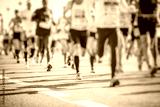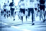 colorful silhouettes of people running in the city