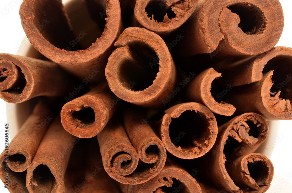 Isolate cinnamon/cannella stick, top view closeup photo image of cinnamon/cannella stick isolated on white background, roll side of cinnamon/cannella, food accessories, food ingredient, food condiment