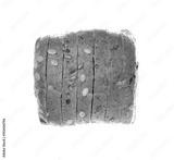 Isolate cereal bread, top view closeup photo of sliced cereal bread loaf isolate on white background, bread loaf, wholewheat brownbread, cereal brownbread, organic healthy food, loaf of brownbread