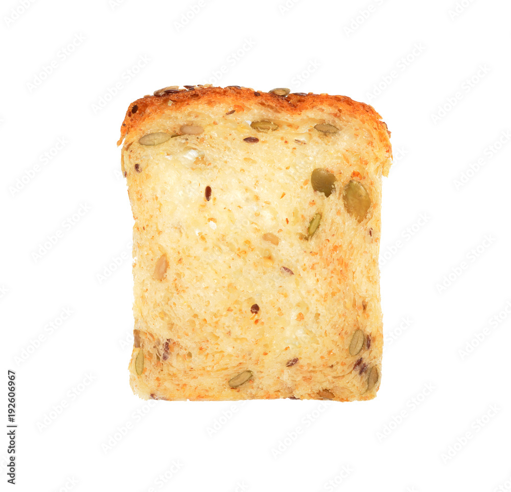 Isolate cereal bread, a top view closeup photo of sliced cereal bread isolate on white background, bread texture, wholewheat brownbread, cereal brownbread, organic healthy food, loaf of brownbread