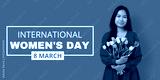 A woman holds flowers in honor of Women's Day celebration