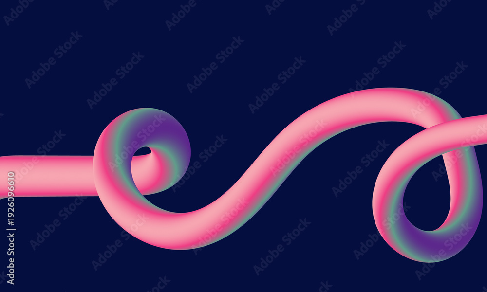 A pink and purple gradient tube twists and turns across a dark blue background creating abstract visual interest