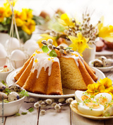 Easter yeast cake with icing and candied orange peel, delicious Easter dessert, traditional Easter pastries in Poland