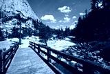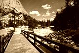 Wooden bridge at the top of Nevada Fall in Yosemite NP in California in the USA
