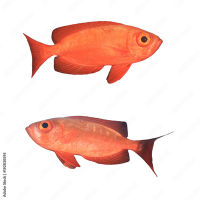 Red tropical fish isolated. Crescent-tailed Bigeye fish on white background