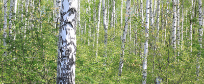 Beautiful young birch trees with green leaves in summer in sunny weather