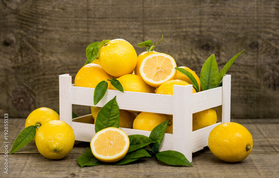 Fresh lemons in the crate