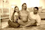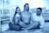 Pregnant woman with her daughter and husband on floor at home