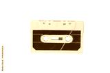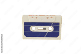 Vintage white cassette tape with purple label isolated in PNG on transparent background