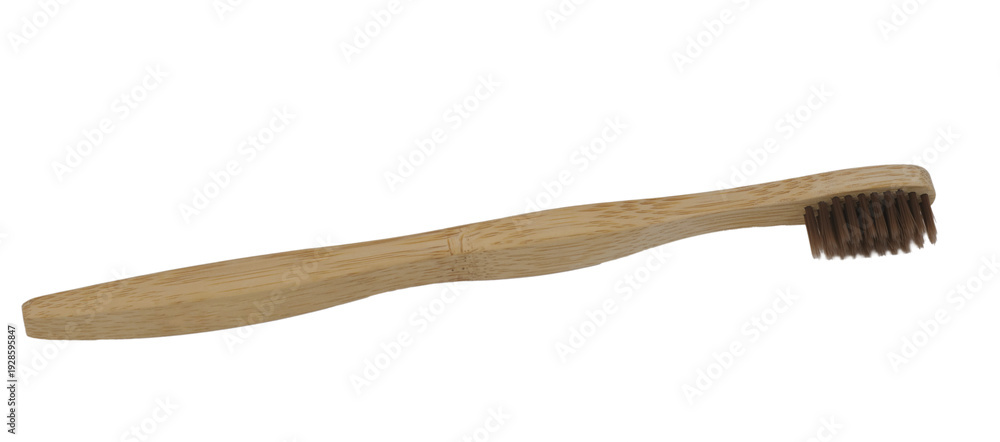 Bamboo toothbrush with natural bristles isolated in PNG on transparent background