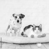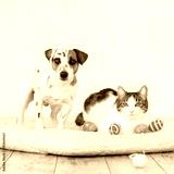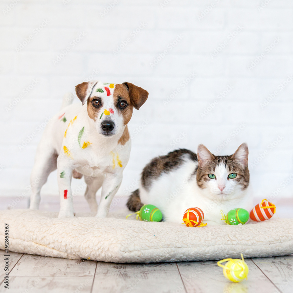 Dog and cat with easter eggs