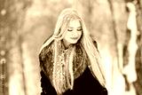 Winter young teen girl portrait. Beauty Joyful Model Girl laughing and having fun in winter park. Beautiful young woman outdoors. Enjoying nature, wintertime