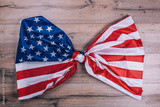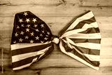 American flag, tied in a knot, on dark wooden wall. Visual concept of preparation for Independence Day. Fourth of July patriotic consept.