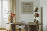 Minimalist Home Office Interior with Elegant Wooden Desk and Decorative Vase in a Bright, Modern Workspace
