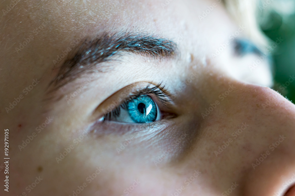 Close-up of a beautiful blue eye of a Caucasian race boy.