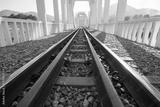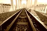 railway track, line crossing railway track on the stone background Bangkok Thailand