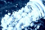 Pink Himalayan salt in a glass jar.