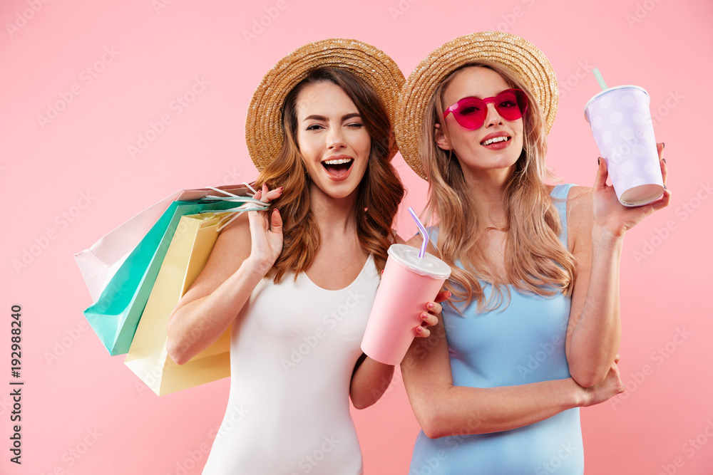 Portrait of a two happy girls dressed in swimsuits
