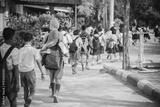 Happy students having fun on street after school