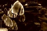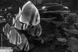 Orbicular batfish (Platax orbicularis) - ocean and sea fish. The group of floating orbicular batfishes.
