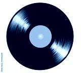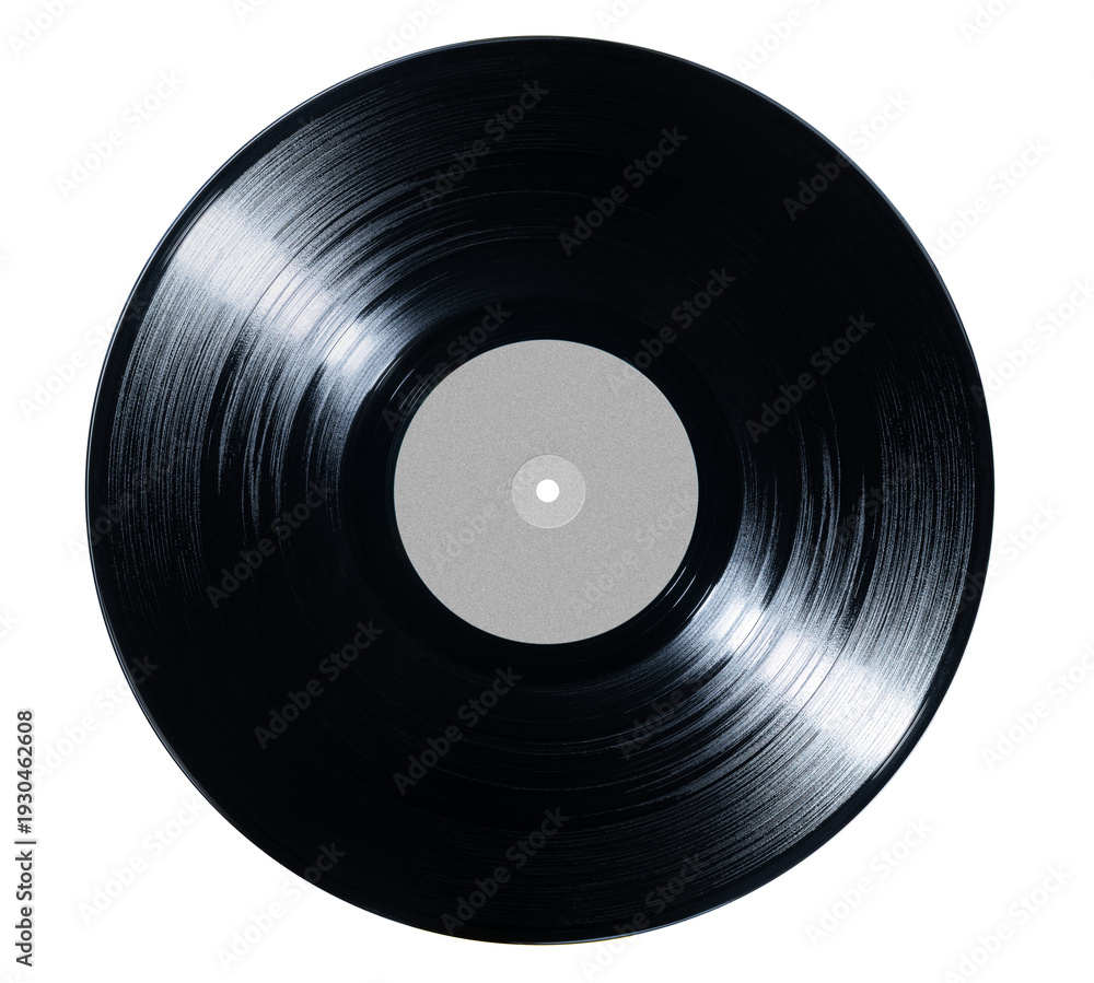 Black vinyl record isolated on transparent background PNG, top view. Classic analog music disc with detailed grooves and blank center label.
