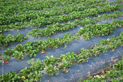 Strawberry farm raw garden sprinkler implant soil with plastic guard protect in clod weather