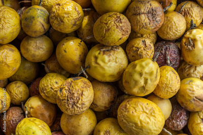 Yellow passionfruit withered background, flavicarpa Passiflora edulis