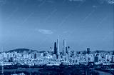 Aerial view Skyline of Guangzhou with modern skyscrapers under clear blue sky