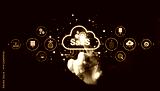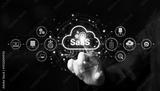 Visual representation of SaaS showing infrastructure, SaaS deployment, SaaS platform features, and SaaS integration model in digital environment. Spline