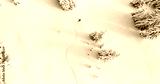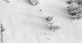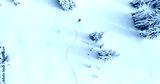 Snowboarder Drone Angle Powder Turns Fresh Untracked Mountain Powder Snow Aerial View