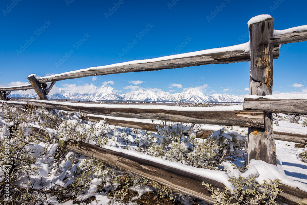 Grand Teton Range through a Log Fence