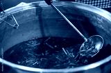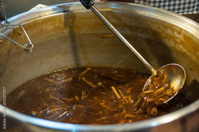 Close up stirred Fish Maw Soup pot in night market street food