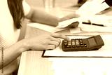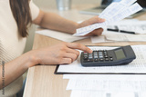 Deduction planning, debt asian young woman calculating money balance of finance from bill and income, cost budget expenses for pay money form personal individual on table at home. Financial concept.