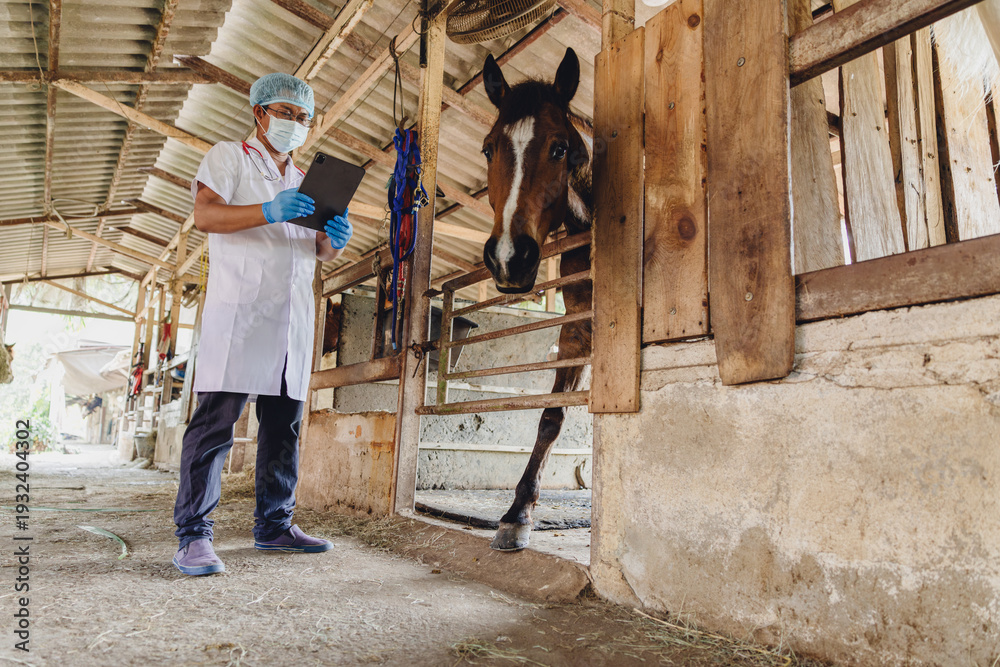 Horse Veterinarian checking Equine Herpesvirus, Vet doctor monitor animal health with AI technology