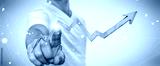 Businessman using digital modern arrow 3D rendering