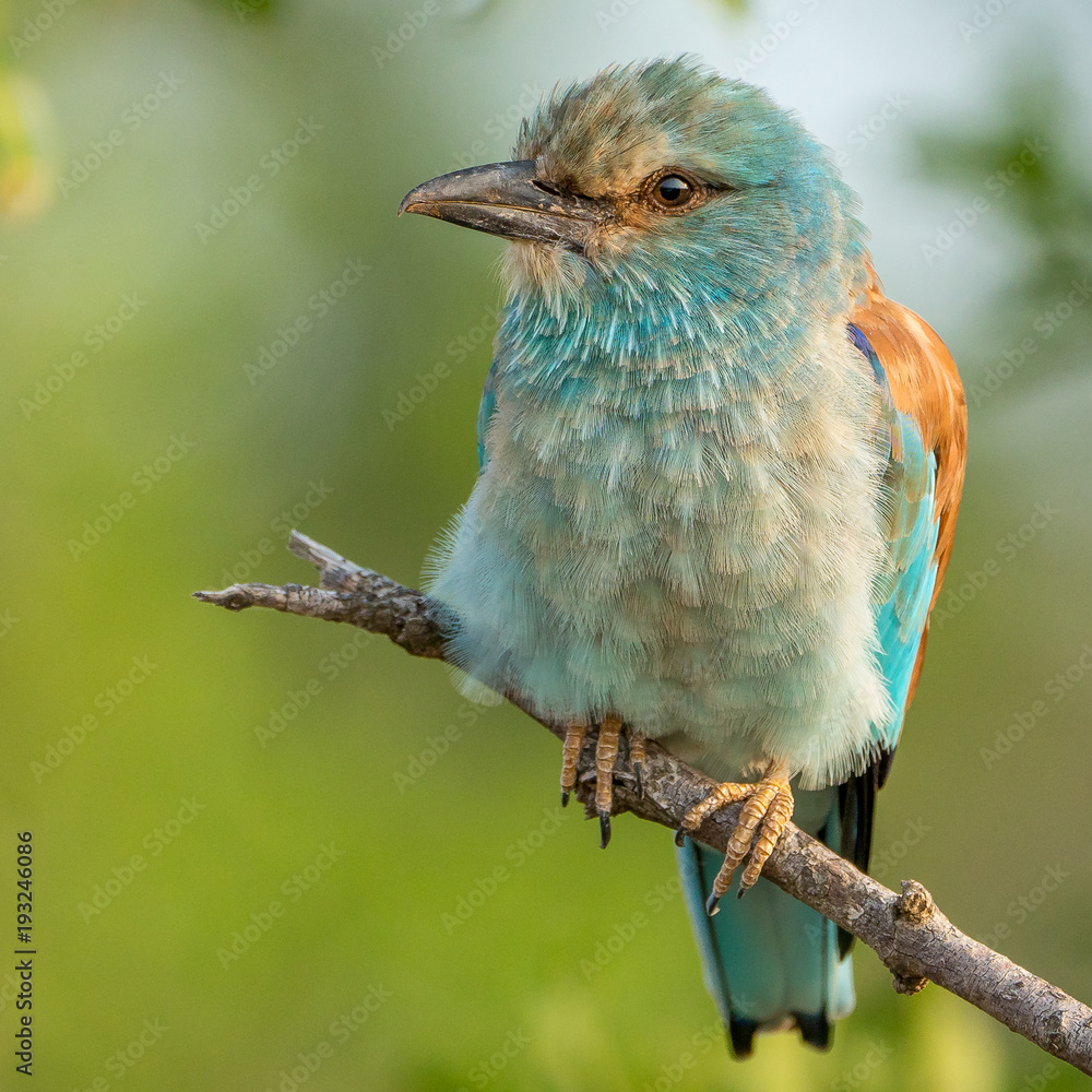 european roller perched in a tree