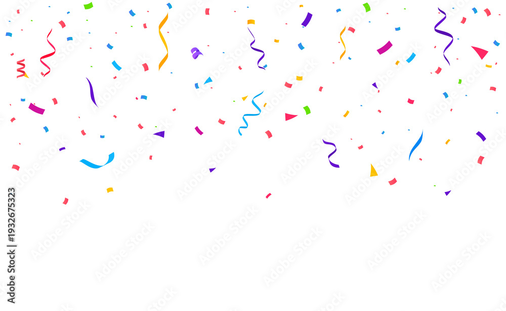 Bright Colorful Confetti Background with Curly Party Streamers for Celebration Templates