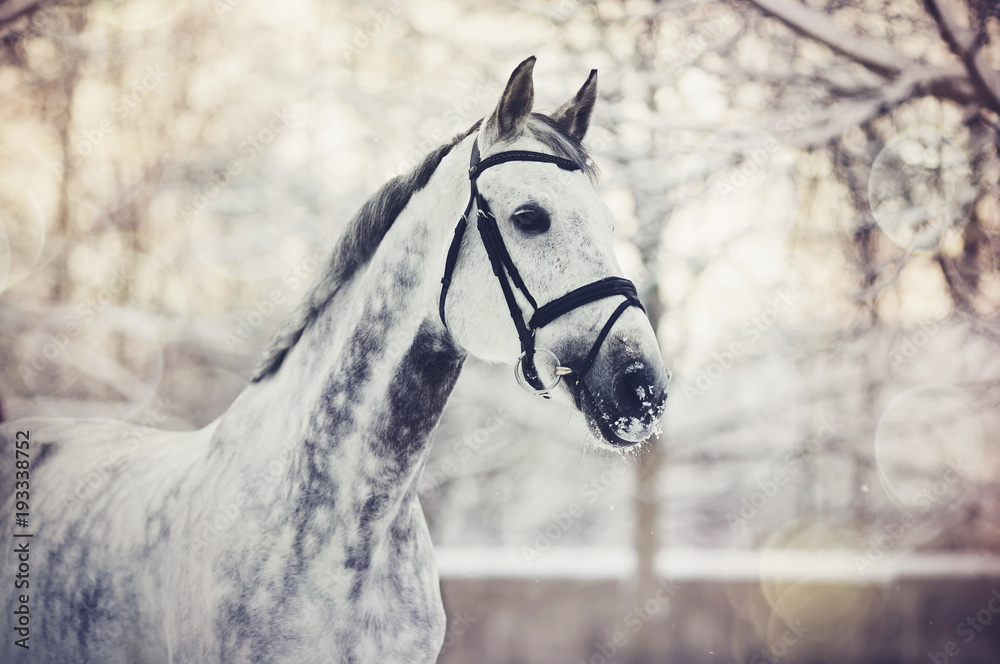 Portrait of a gray sports horse