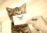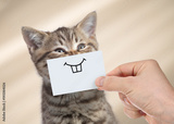 funny cat with smile on cardboard