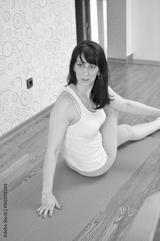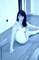 Beautiful middle-aged woman in sportswear, doing fitness exercises. Slim Woman exercise at home