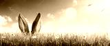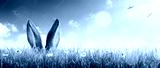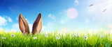 Ears Of Bunny Appear In Grass - Easter Card