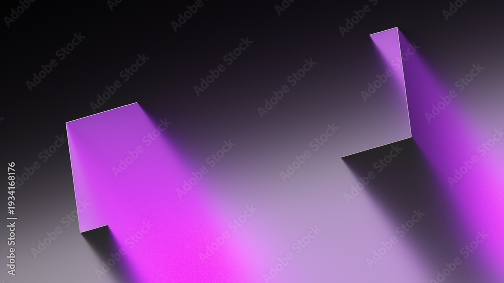 Purple arrow shape with soft shadow gradient. Abstract geometric modern background. 3D render illustration.