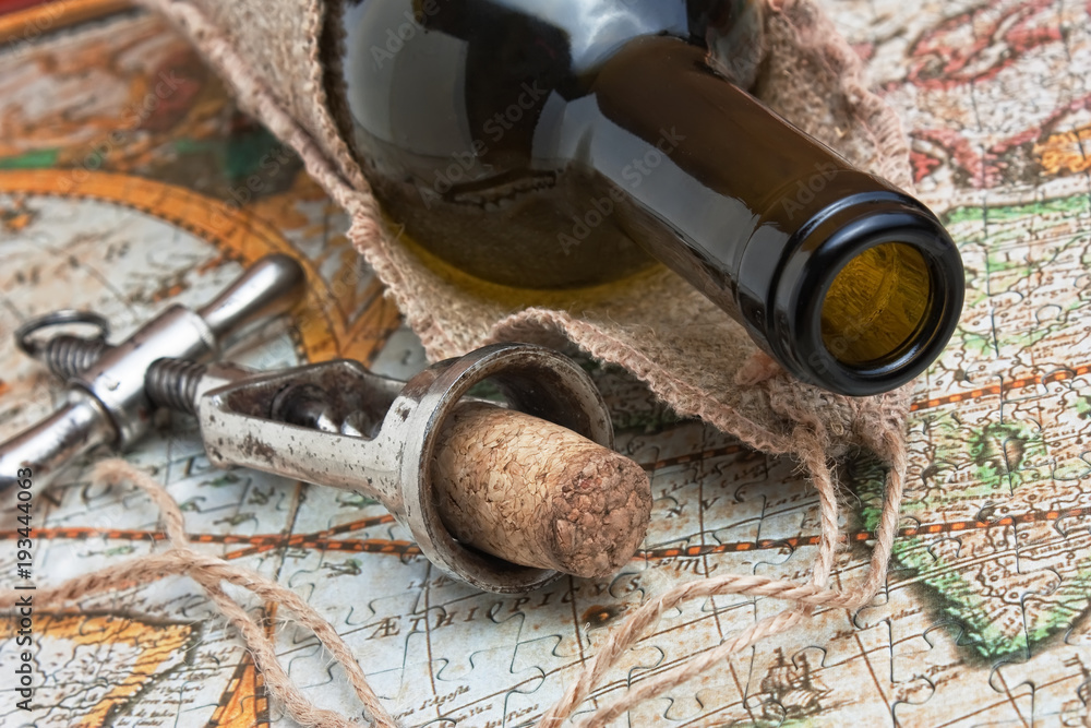 bottle of wine and a corkscrew