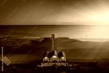 Clifftop view of Pier at twilight time of Saltburn by the Sea, North Yorkshire, UK. Vintage tone
