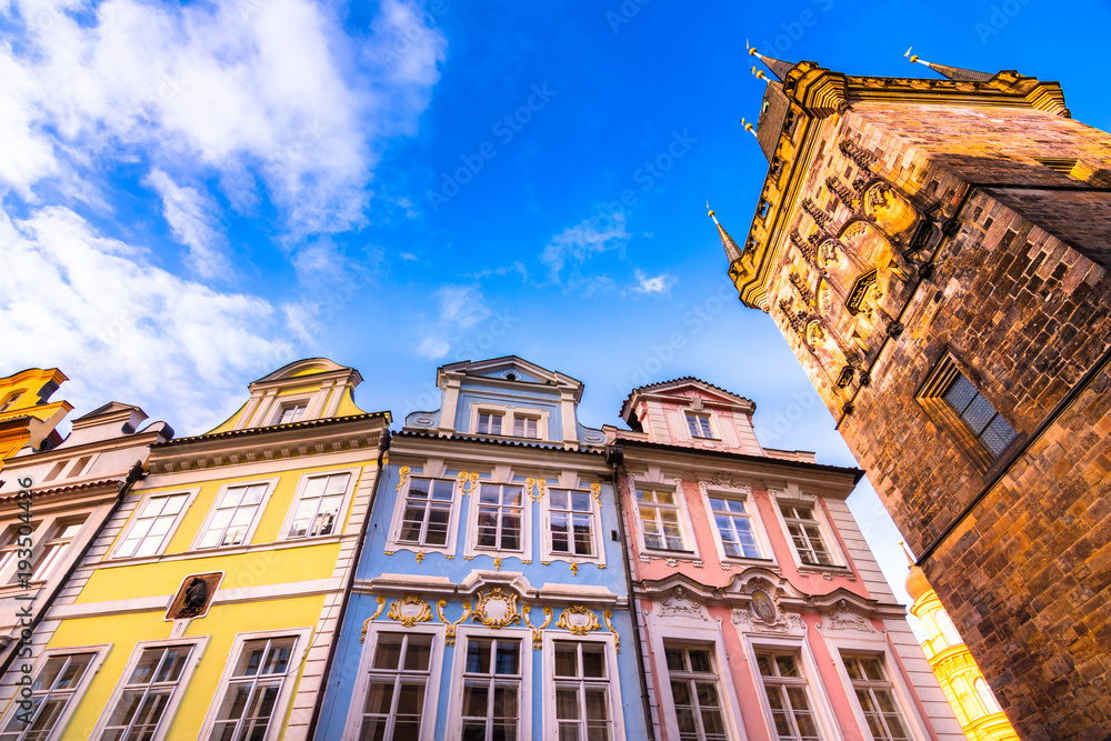 Cityscape of Prague with medieval towers and colorful buildings, Czech Republic